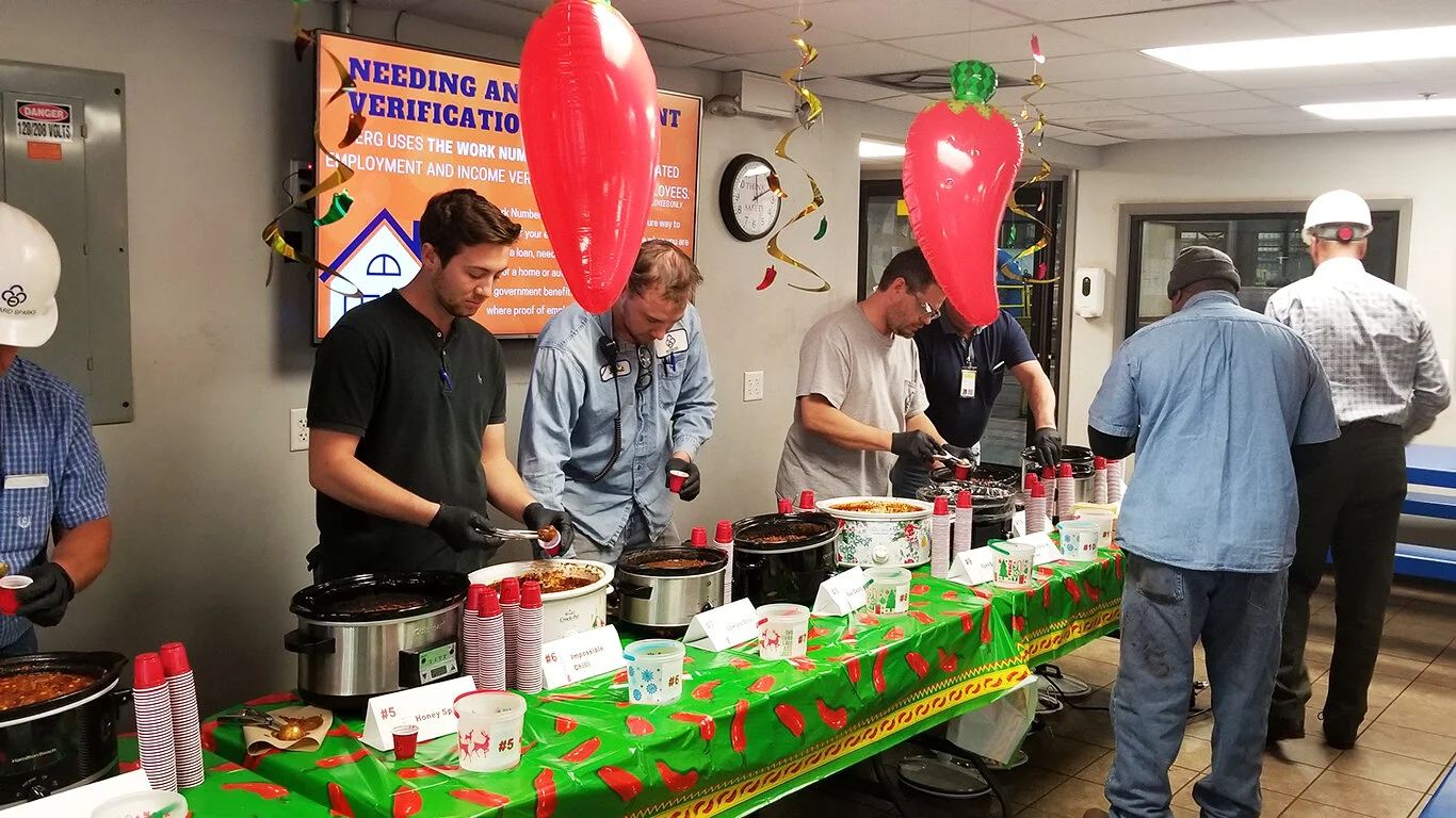 Mid-November an odd sight was to be seen during shift change when blue antlers started to appear in the HR Hallway. The oddity was there to promote the first ever chili cook-off at BPP!